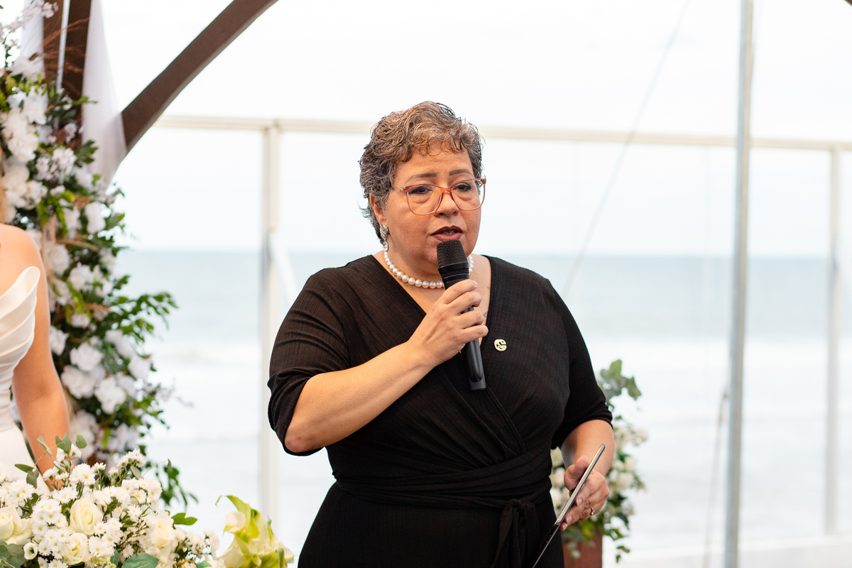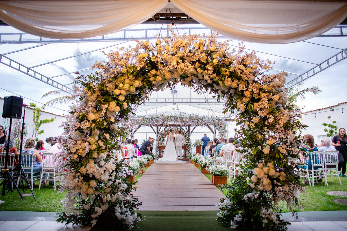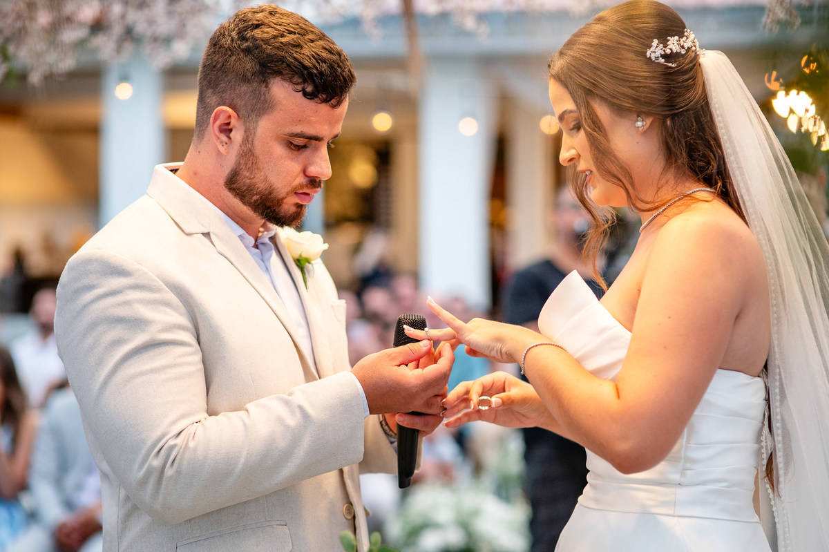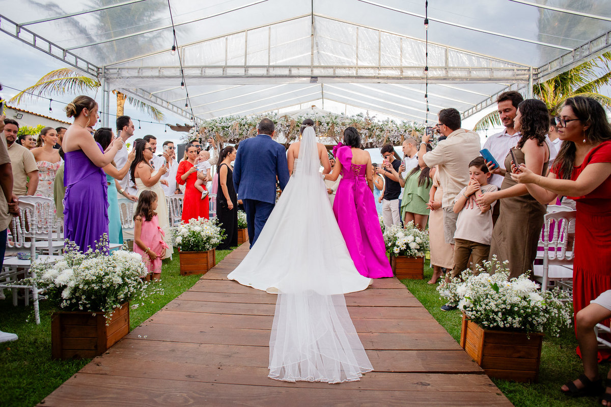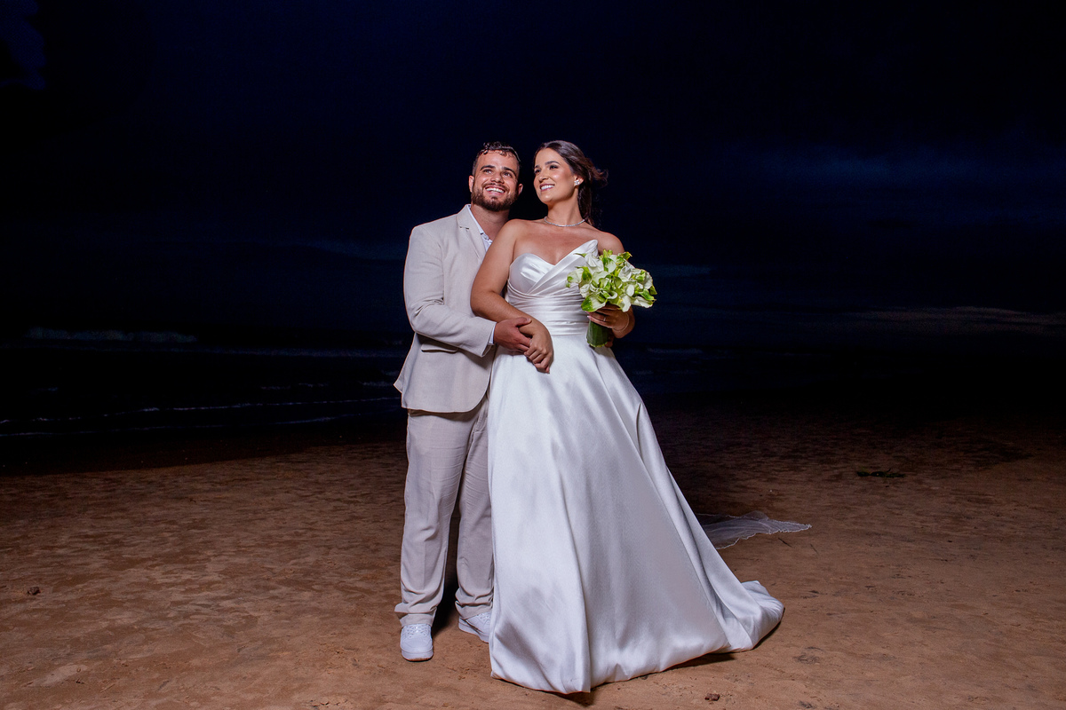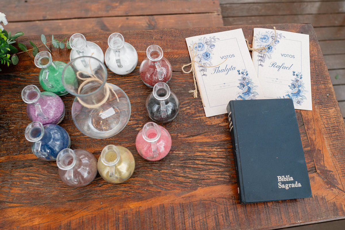 Às 16h30, chegou o tão aguardado momento: a hora do “sim”. A cerimônia foi simplesmente inesquecível, tendo como testemunha o mar infinito de Vila Velha. Emoção à flor da pele, olhares sinceros e muitos sorrisos marcaram essa união tão especial. A cerimônia das areias, conduzida pela celebrante e pelos próprios noivos, selou o compromisso com simbolismo e beleza.