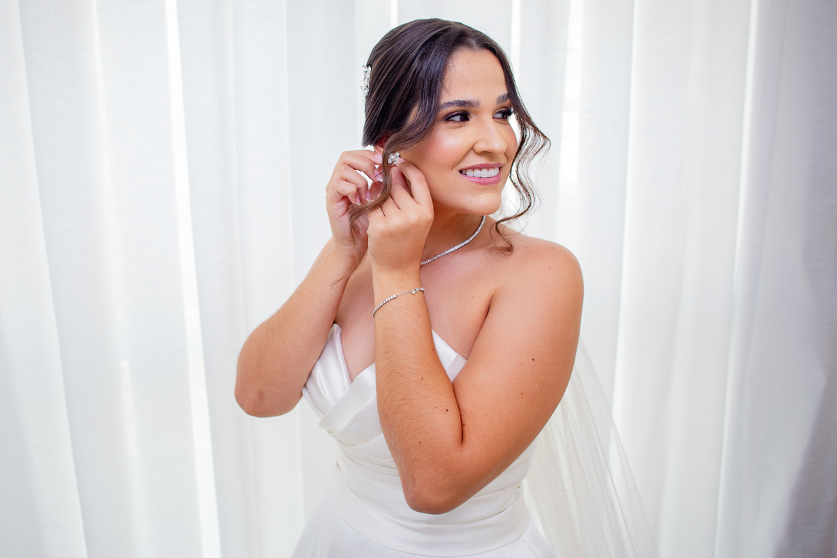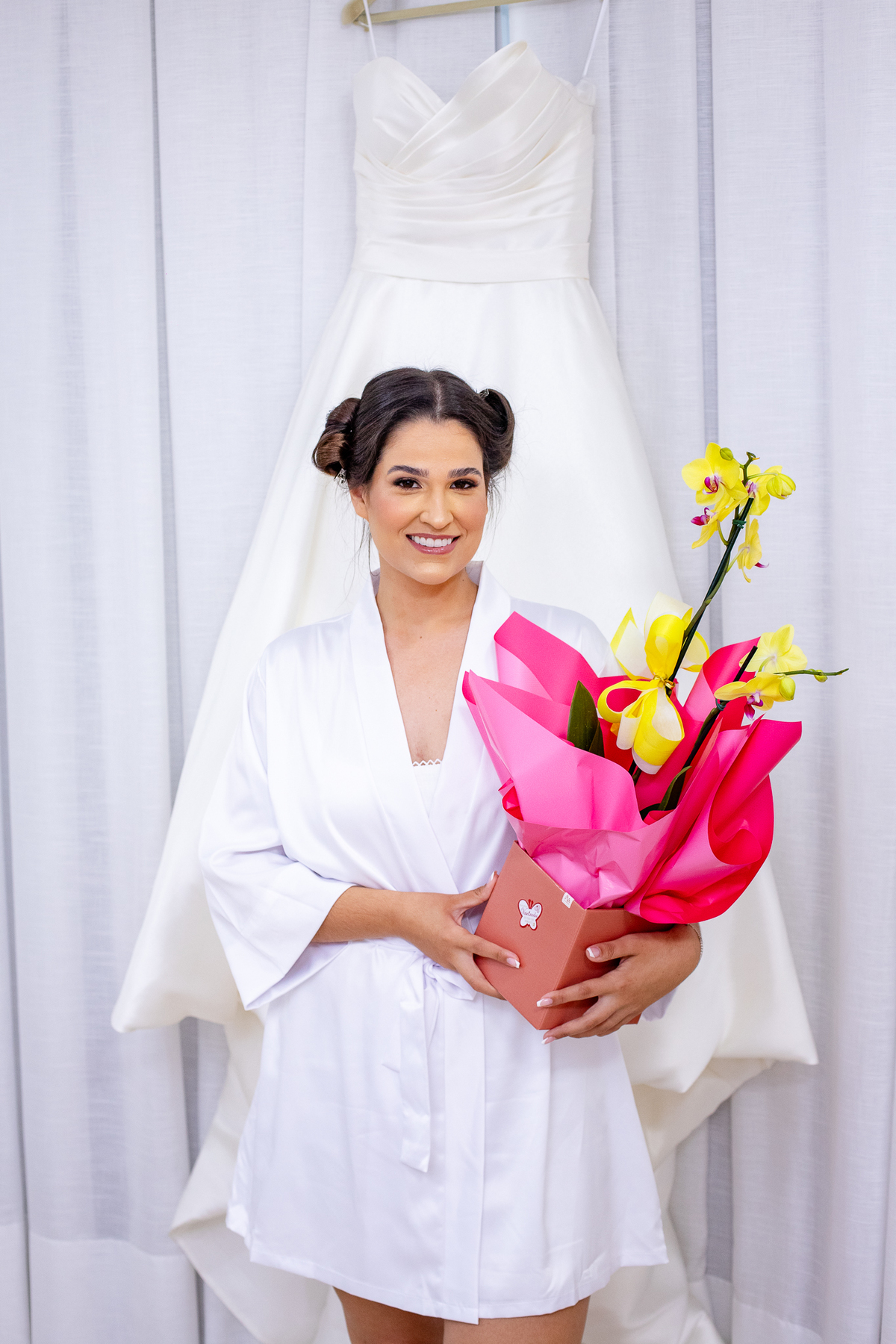 O making-of da noiva foi marcado por expectativa e emoção. Thalyta estava ansiosa, mas a cada detalhe cuidado pelas mãos talentosas das profissionais, seu sorriso se abria ainda mais — ela se transformava em uma verdadeira princesa, deslumbrante.