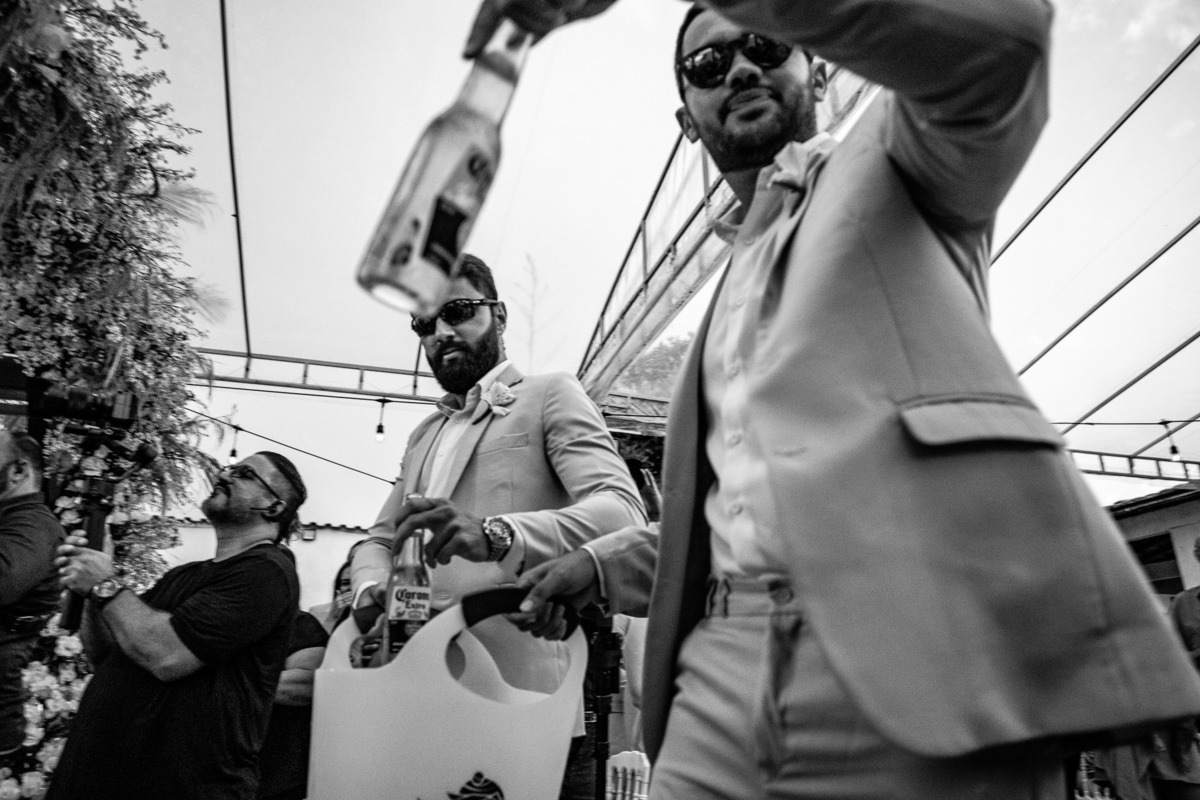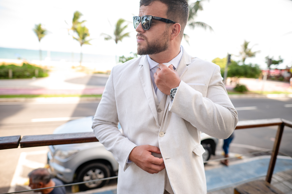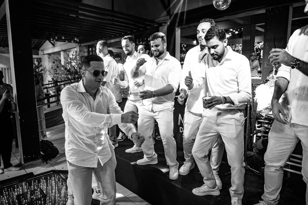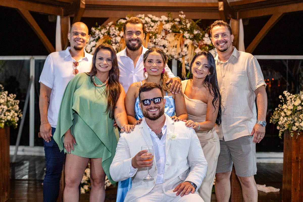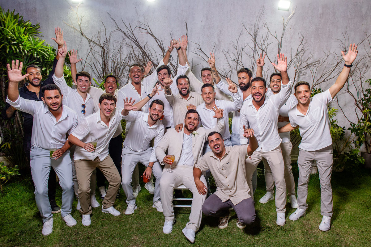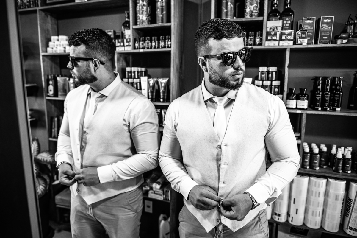 Enquanto isso, Rafael vivia seu próprio momento de preparação na barbearia, ao lado dos padrinhos e amigos. Entre brindes com cerveja artesanal, risadas e brincadeiras, o clima era de pura descontração e alegria.