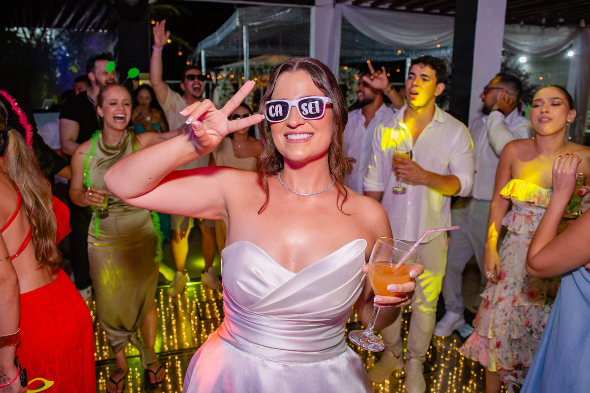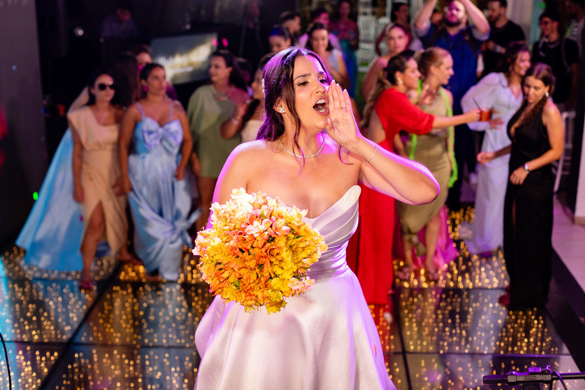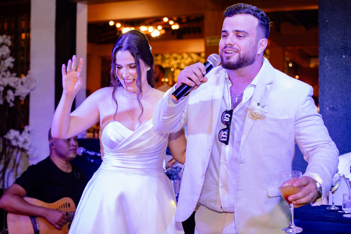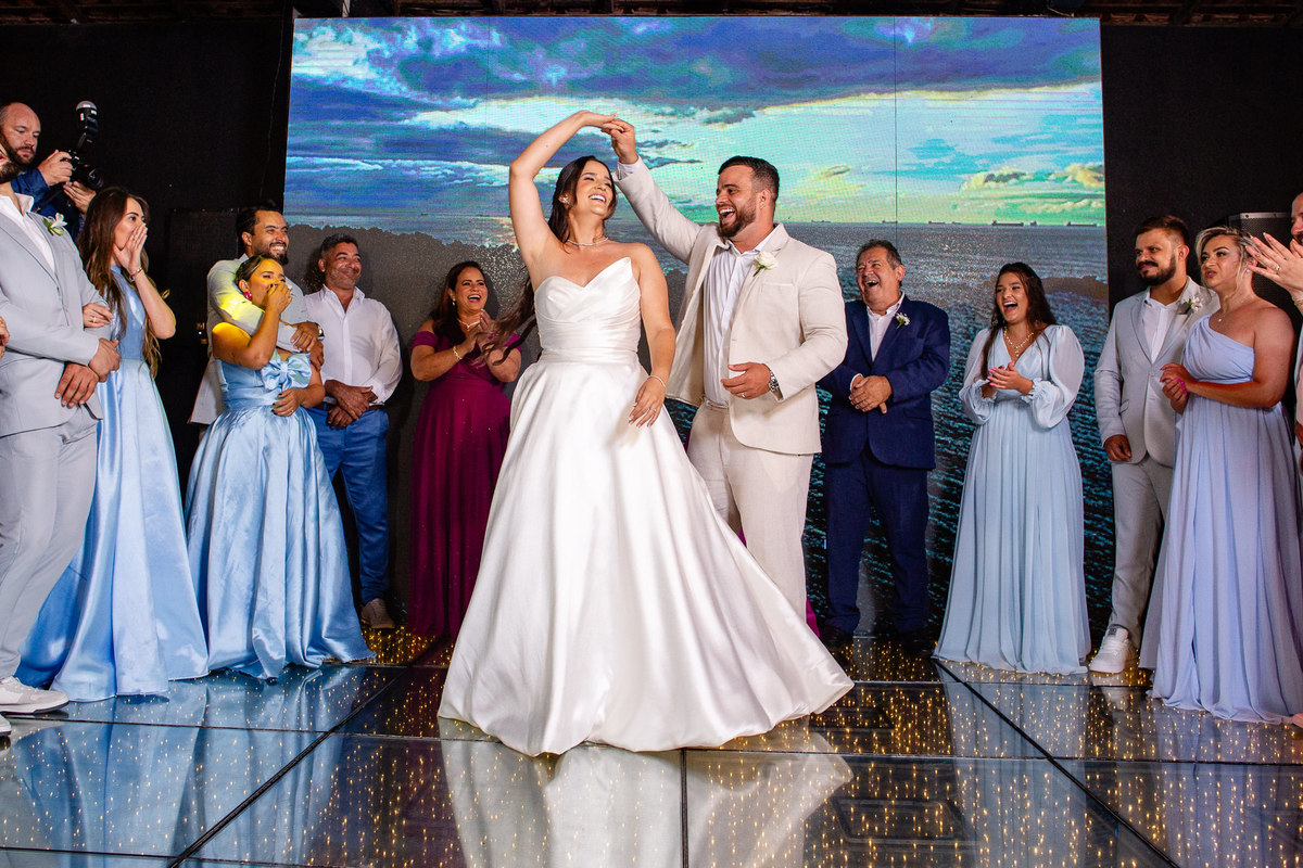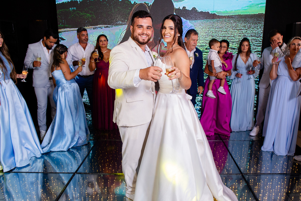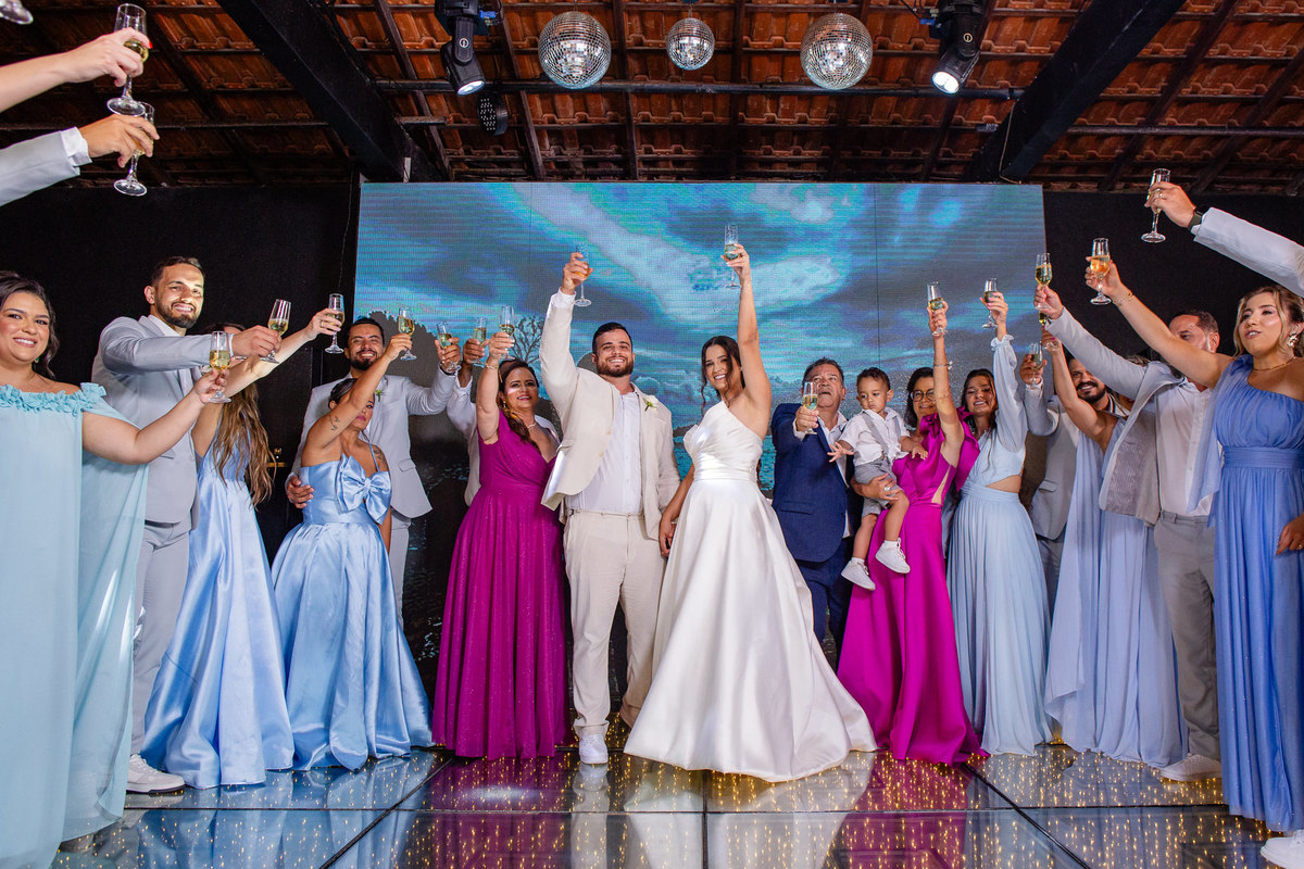 Logo após, a festa começou com tudo! Um show de pagode — o estilo favorito do casal — colocou todos para dançar, seguido por um DJ que embalou a noite com muita animação. Foi uma celebração leve, alegre e cheia de amor, exatamente como Thalyta e Rafael sonharam.