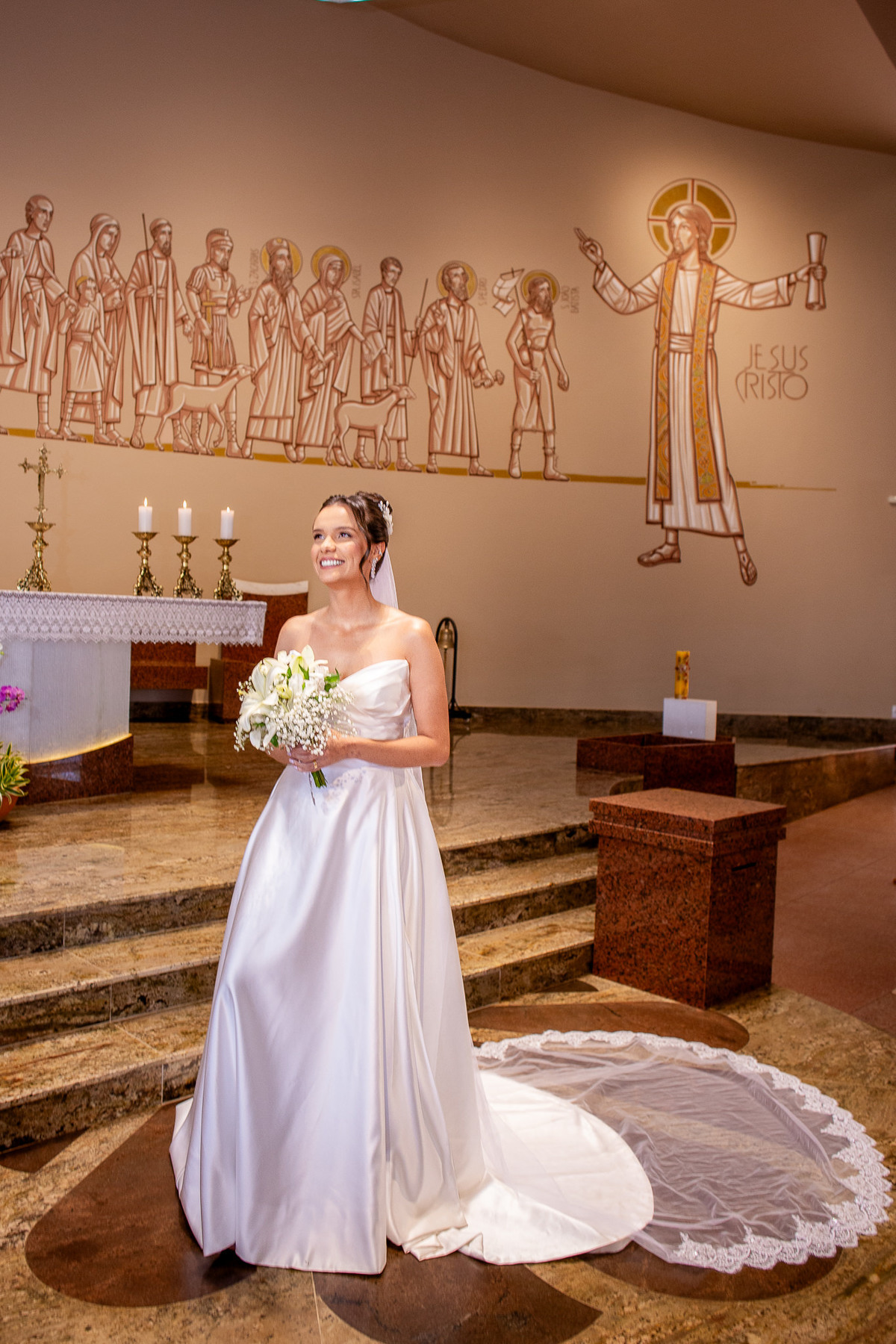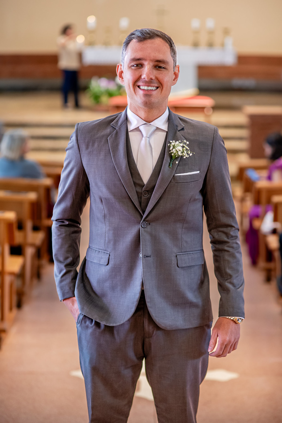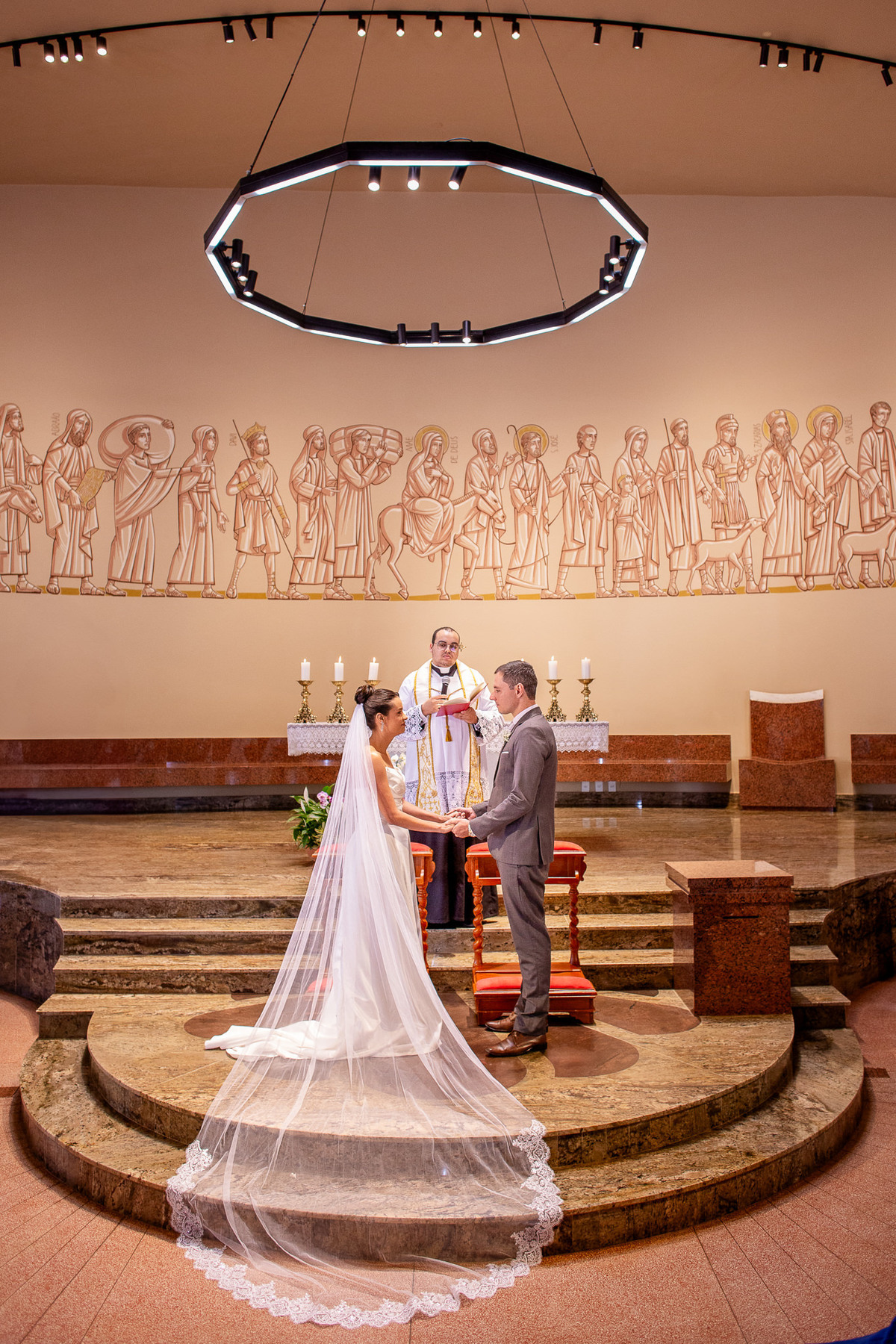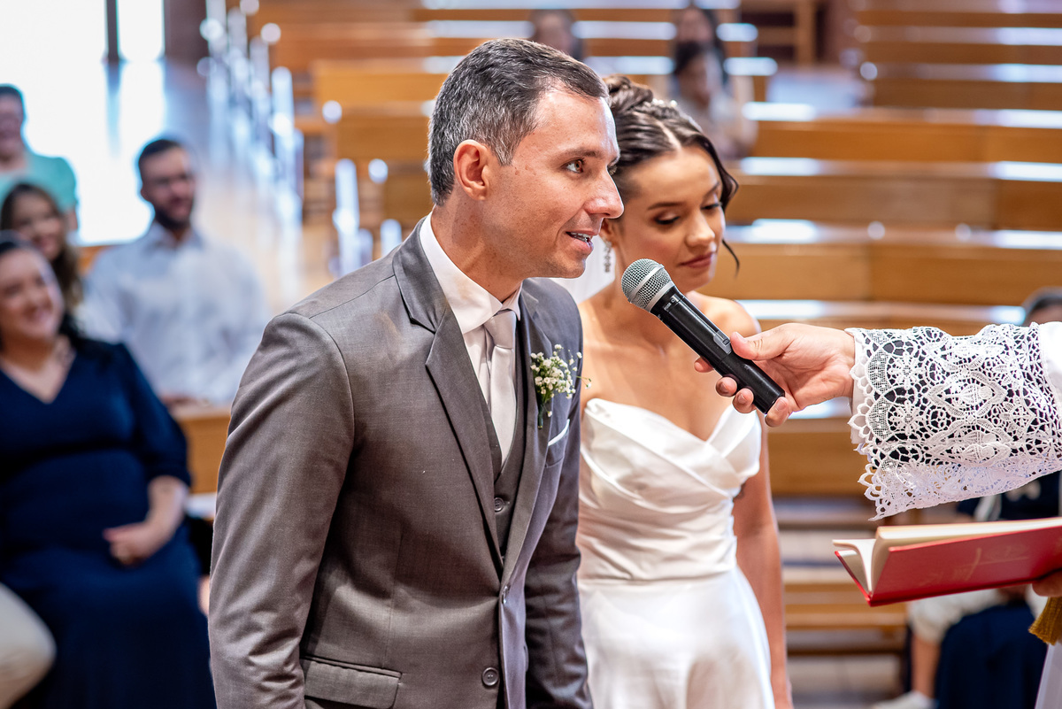 Um momento mágico e inesquecível. A cerimônia, conduzida pelo Padre Leonardo, foi marcada por palavras profundas e uma linda homilia. Em um clima de fé e amor, Fernanda e João disseram o tão aguardado “sim”, selando uma aliança eterna diante de Deus e de todos os presentes. Após a celebração, os tradicionais registros e um breve ensaio marcaram os últimos momentos na igreja antes da grande comemoração.