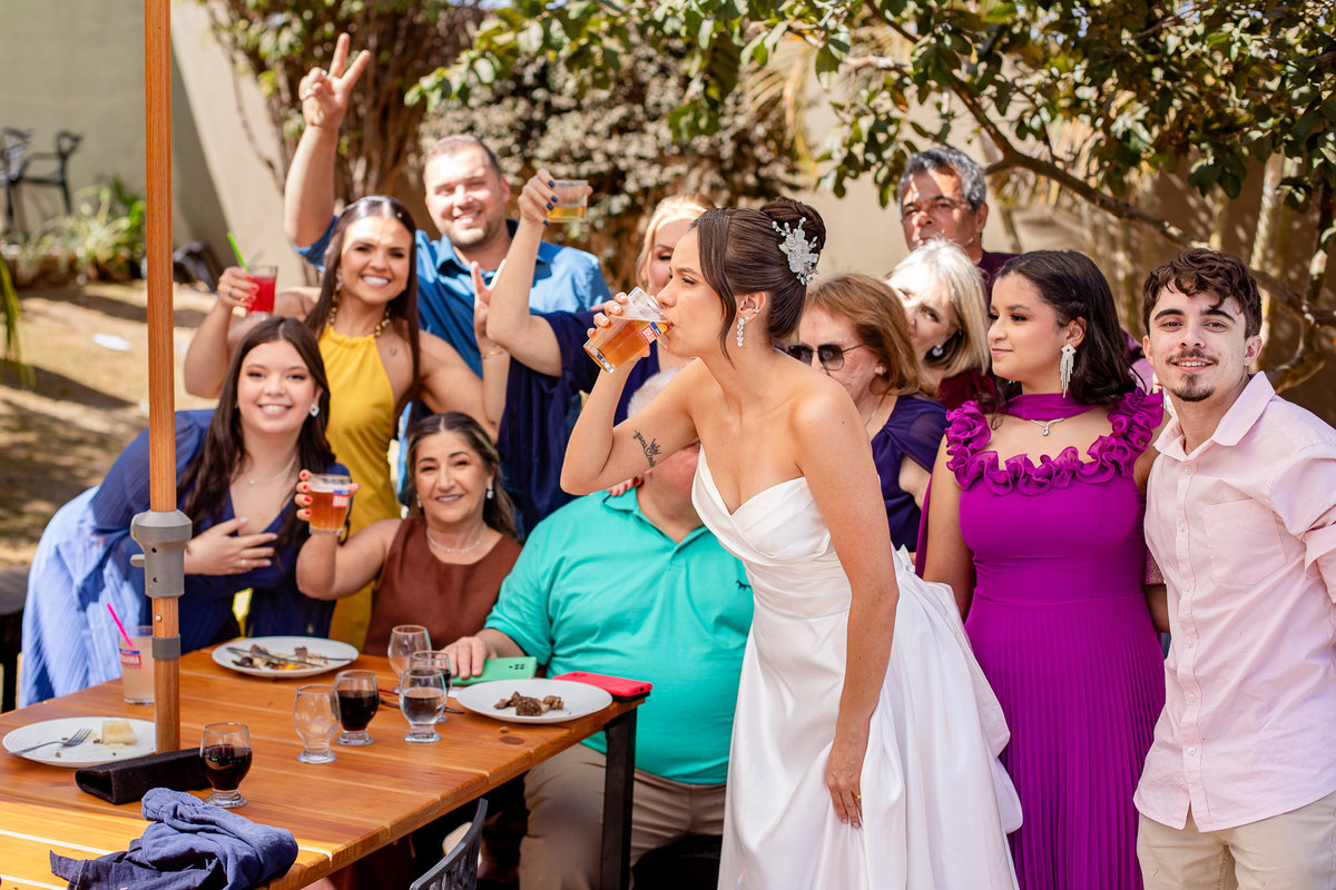 Na recepção, os noivos foram recebidos com uma explosão de aplausos e alegria por parte dos convidados — uma verdadeira festa de amor! Gratidão por me permitirem contar essa história tão especial através do meu trabalho.